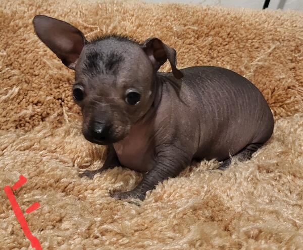 message muscovy about this ad This is 3/ 4 mexican hairless 1/4 hairless chihuahia Female. She will be up to date on vaccines and vet checked before going to her new home. Parents are here. She is tiny Born 9/20/2025. Ready to go after 11/30/2025 parents are pictured dad is red. mom is black dad is 6 lb mom is 5. Located in Foster, Ky. CONTACT FOR PRICE |