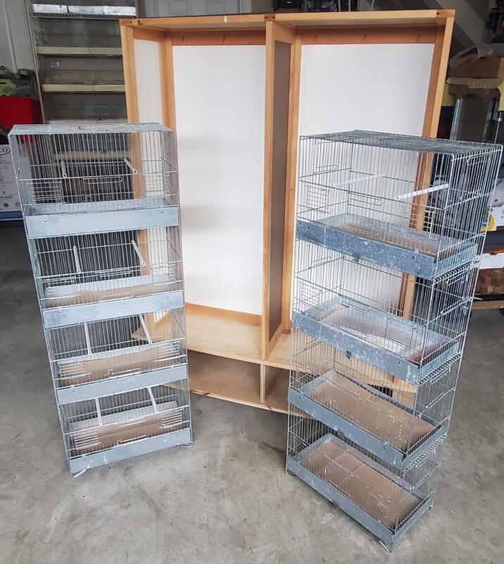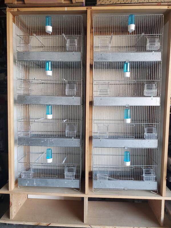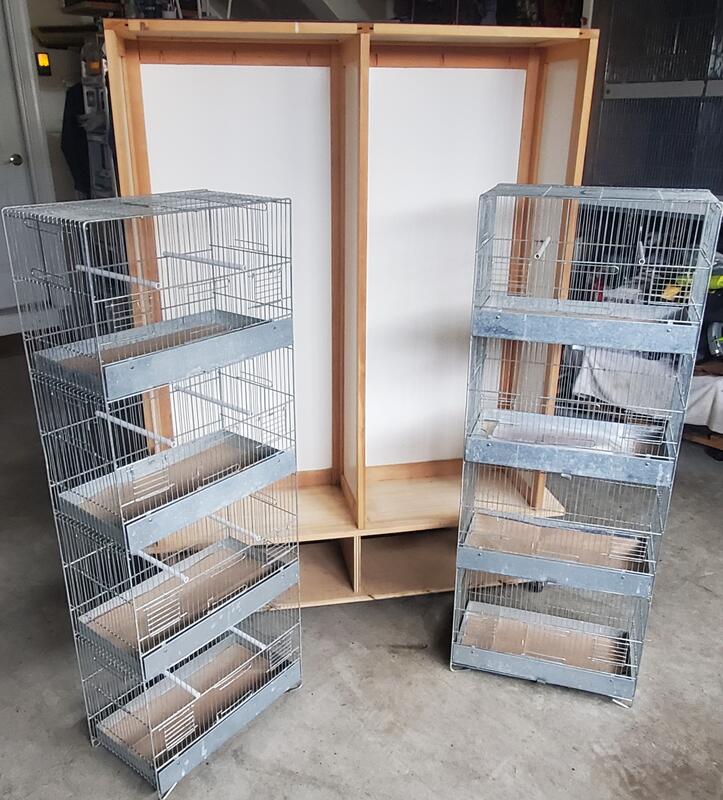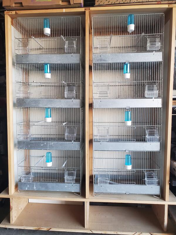 message timbrados about this ad 2 Four Stack Cages - 18" X 9.5" X 48" in excellent condition. Each set includes: 4 METAL TRAYS 4 METAL FLAPS 8 PLASTIC OUTSIDE 4 WATER BOTTLES 8 PLASTIC PERCHES 4 FRONT DOORS 8 SIDE DOORS Homemade wooden Encasing on caster wheels, keeps the surroundings clean. |