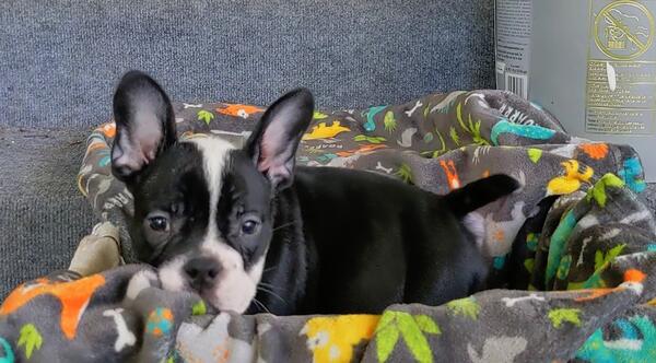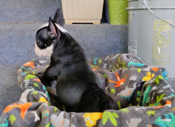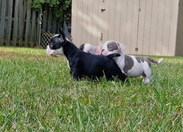 Black and white male American bully puppy asking 1500. 4 months old pet only.