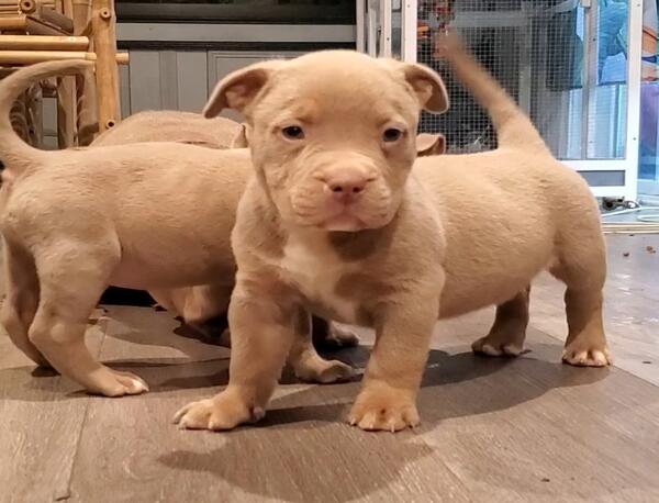 message bountyhunterbullies about this ad We have just produced an absolutely stunning litter of beautiful healthy American Bullies. The mother is a $7,500 XL Bully from Top Tier Kennels with a superb sweet temperament. The sire is the most intelligent dog Ive ever met with a wonderful personality on him as well out of Humbles Bully Farm with Grand Champion lines. Parents are embark tested and have a breed mix breakdown. Our dogs do not stay in cages at Kennels but live in our home with us as do all of our puppies we raise. There is no puppy farm breeding here. These are not cheap low quality Bullies. You will be getting excellent temperament, with show quality attributes, thickness and bone structure with athleticism still built in these little playful tanks. You will also get a 2 year health guarantee and Breeder support in a written agreement. We will be starting a Facebook group you can also join for our Kennel and we welcome you to post pics, videos of your new puppy to the group and ask any questions you may have or contact us direct. Our puppies will be Vet cleared, have first shots, dewormed, and ready for their new forever homes by the time you come to pick up the new member of your family at 8 weeks of age. We can FaceTime you and meet you in person before putting a deposit on your puppy so you have no fear of Scammers and BEWARE there are a ton of scammers in this field. They will often push for a deposit before you ever get to see your puppy. You are welcome to put a deposit after meeting us or seeing the puppy of your choice first in person. If youre looking for a beautiful healthy quality Bully you will find them here. Be leary of breeders that dont offer health guarantees as they may know their pups have health issues later. Vet bills can add up later and health issues will sometimes turn into headaches for you. Our dogs and puppies are all ABKC registered and Breeding rights are available for an extra fee. We are located in West Milton, Ohio. We have 8 puppies in this litter born 1/19/2025 and have tri colored lilacs, lilacs, blues, and blue brindles to choose from. Taking deposits now if youd like to secure your new family member. Both parents of the puppies are shown in the pictures and both are on site. You can see them when you visit if you like. Contact Reno at 513-546-1959 Text will get you a much faster response as i dont normally answer calls from numbers i dont recognize. message bountyhunterbullies about this ad |