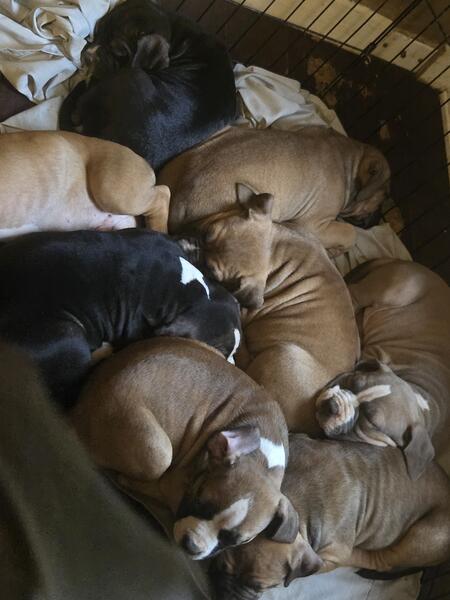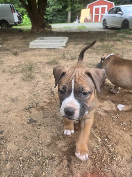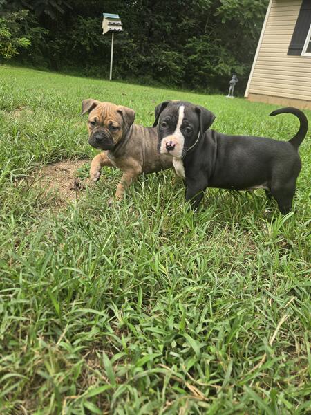 message babybulls about this ad We have some beautiful males left. Born june 16th 2025 . They are ready for there forever homes. Dad is the black tri mom is the blue. Family and farm raised. Raised around Chickens, cows,ducks,geese, and cats. Please reach out if interested . No.papers. |