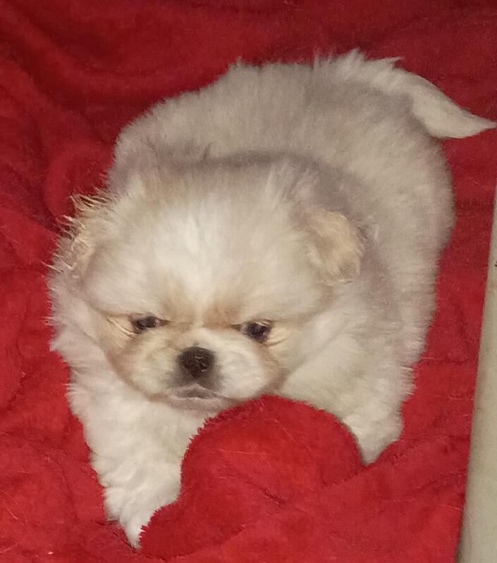 message beautifulpekes about this ad 3 Pekingese purebred puppies, 9 weeks old. One male and two females. The male is one of the white puppies. They must go tomorrow because I am going into a Nursing home for awhile. And I want them to go to their forever homes and be well taken care of. Parents are on premises both full-blooded. Puppies are little sweethearts, love to cuddle and play. Discount available if you would be interested in two or three of the puppies to keep them together. Only selling to forever homes! I have references from people that have bought from me before if you are serious I will give you their names. Happy holidays! |