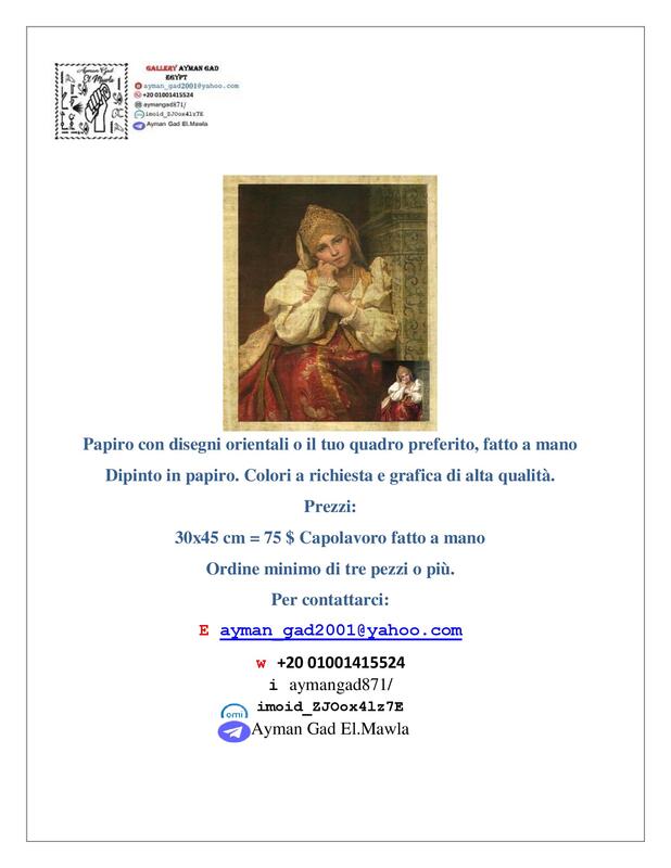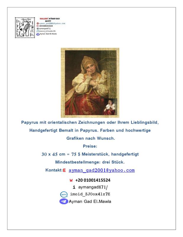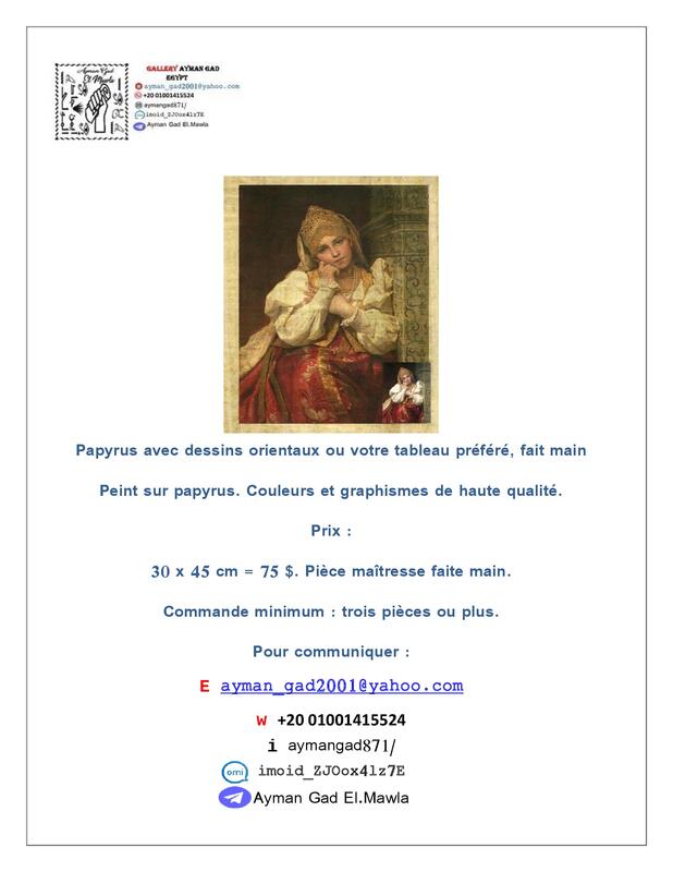 message aymangadelmawla about this ad Papyrus with Oriental Drawings or your Favorite if you want, picture, Handmade Painted in Papyrus. Demand colors and high-quality graphic Something precise living with you for the next generation like the Pharaohs works. MY WEBSITE : |