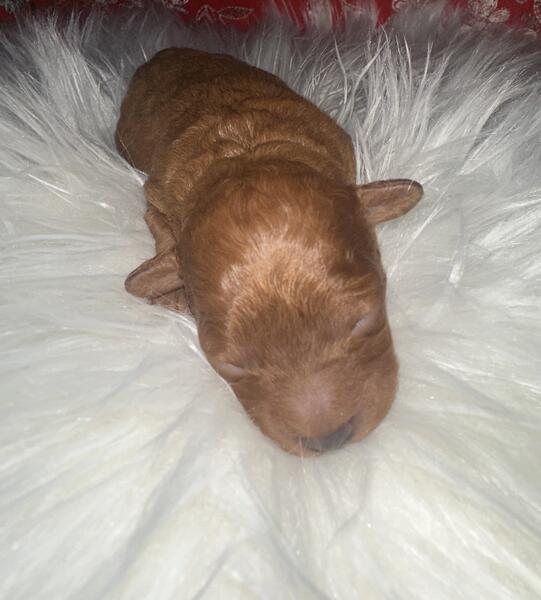 message frecklespoodles about this ad King is a miniature red male who will be 10-13lbs as an adult. His Tail has been docked dew claws left natural. Mom is 9lb cream dad is a 4lb red. He will leave to their forever home with health guarantee and age appropriate vaccinations. Pickup and delivery are available, and I also ship. If you'd like to see the parents and pups grow up, please visit their Instagram, Tik Tok and page facebook pages at @frecklespoodles. Price reflects limited registration. Full AKC is available. |