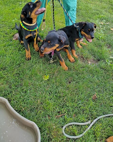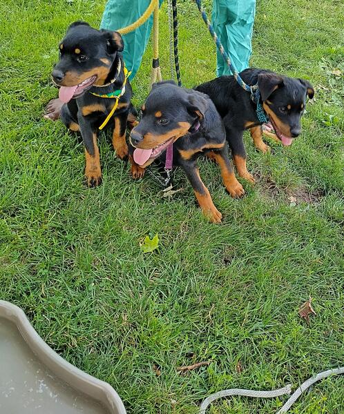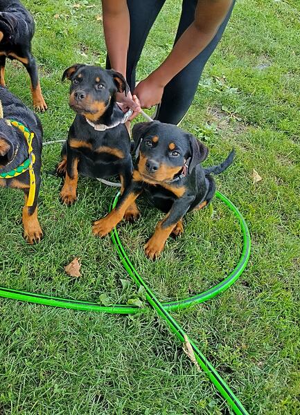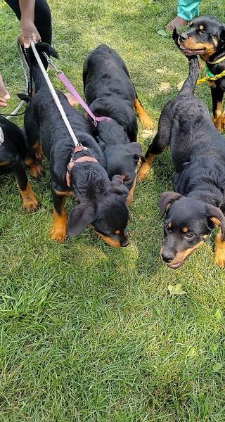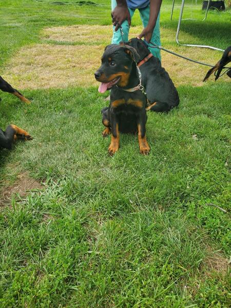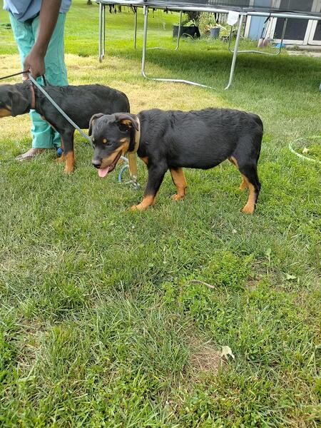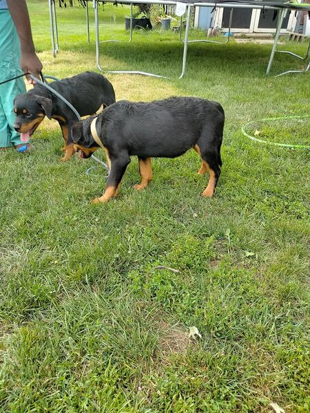 message sugarnspicefarms about this ad German Rottweiler ready for their furever home . 5 months old, 3 Females left. Both parents AKC registered and on site. Gentle giants good temperament great bloodline very intelligent. 517 Family-friendly 575 and farm 3599raised. $400. Puppies come with puppy package, papers, up to date shots, dewormed, flea and tick treated. Leave vcmail or txt # in description |