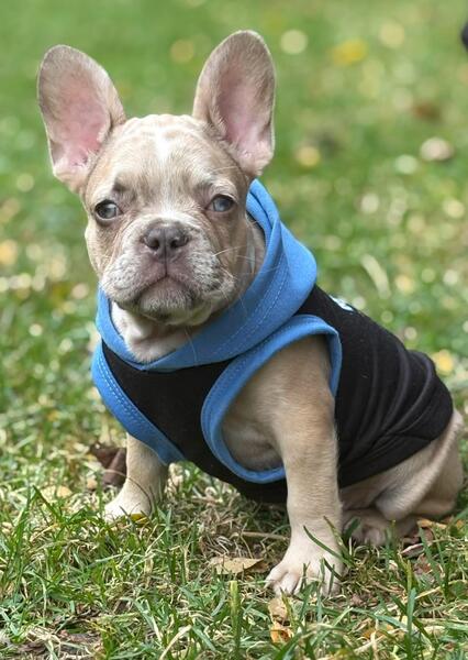 message duca4496 about this ad Giorgio is a gorgeous Merle boy with one blue eye. He is a smaller French bulldog like parents he will be around 20-25 pounds full grown. He is a fluffy carrier. His sire is a full fluffy. Giorgio has a great little personality on him, he is on the more chill side, but def has that spunky crazy Frenchie personality, he is a lover boy, and loves to be held and loves to get a lot of attention! He will come with AKC papers, 30 day free health insurance and a free complimentary vet visit paid by AKC. He has had 3 puppy vaccines done, several dewormings. He currently eats Victor brand dog food. If youre interested in Giorgio please reach out. He is ready to go. LOVING HOME ONLY PLEASE 2000 pet price or 2600 full akc |