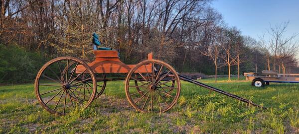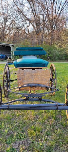 message farmgirl2024 about this ad Beautiful functional carriage in great conditionready to hitch and ride. This authentic horse-drawn wagon has been used with a horse and is fully operational. Whether for farm use, events, or display, its a standout piece full of rustic charm. Features: Solid wood frame with iron wheels Plush teal velvet seat cushions Smooth suspension and sturdy construction Great for parades, farm rides, weddings, photo shoots, or dcor |