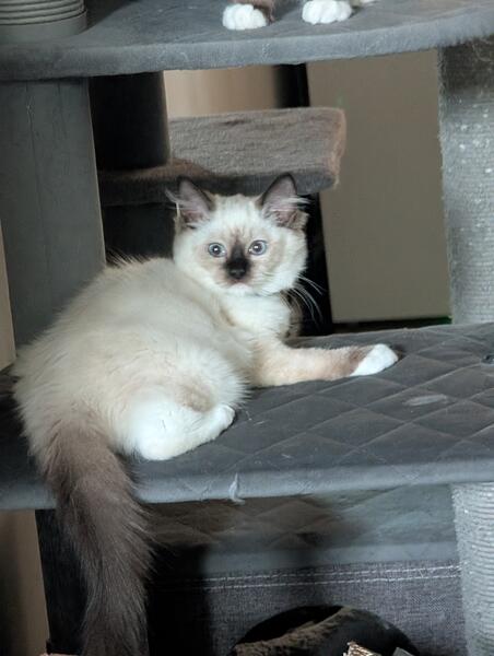 message greatercattery77 about this ad Hello, this is a beautiful Seal Point Mitted Female Ragdoll kitten. She is a very nice nice specimen. She'll be ready to go to her new home on September 26. If interested, feel free to contact me. There will a $100 deposit to hold a kitten. Our Cattery is based in Indianapolis. |