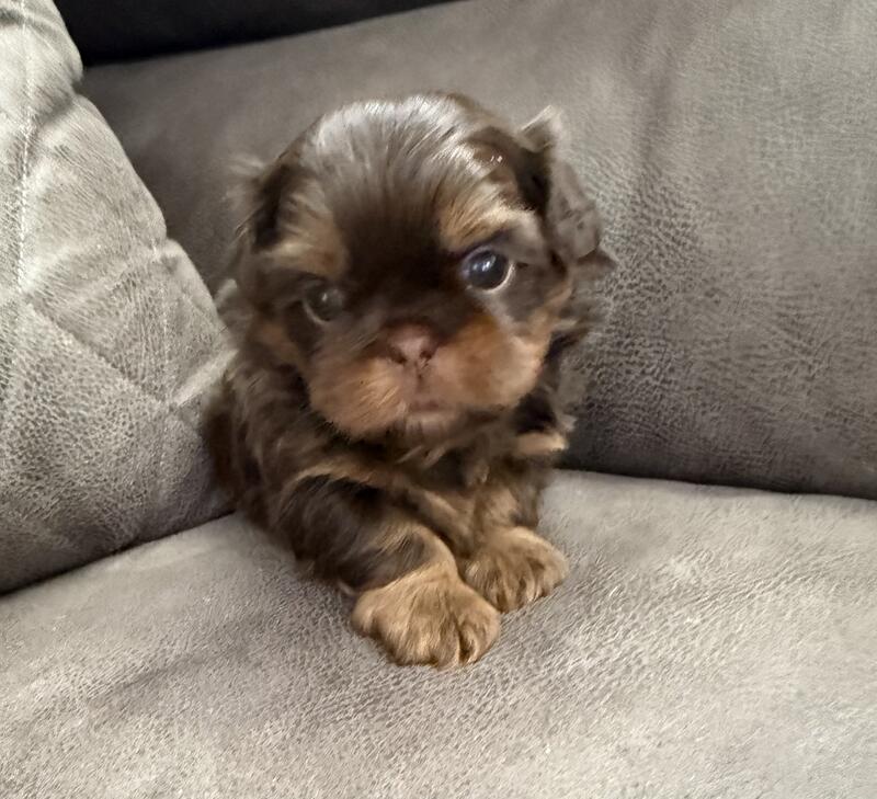 message ameyer07 about this ad Liver shih tzu male dual registered with AKC and CKC, health tested, carries for dobie. He is 19 months old , proven, 9lbs, sweet temperament. Brucellosis testing required for females that is not their first litter. Located in Connersville Indiana. Call or text 765-309-4210 Stud fee is $650 or pick of the litter. |