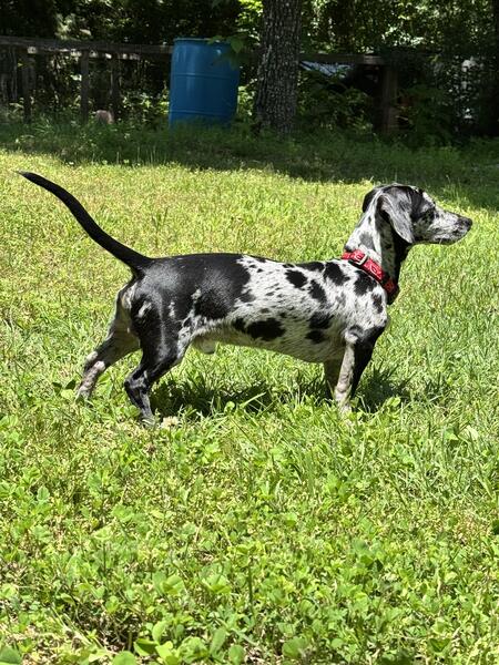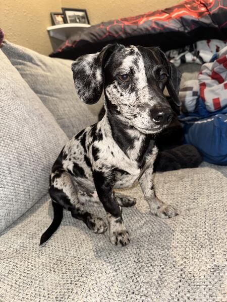 message shadowrose about this ad Male dapple chimera dachshund, 1 year old. Potty trained (he will tinkle when excited or scared) leash trained, recalled trained. Knows basic commands (sit, go lay down, stay, potty) He comes with bed, indoor enclosed kennel, indoor wire kennel, car seat, car buckles, shampoo, brushes, bowls, travel food and water bottle, toys, nail trimmers, treats, and an entire bag of food (we use the 45 pound bags of diamonds naturals salmon skin and coat He will come with his shot records as well and is up to date on everything until September 2026. He is not fixed. He gets bi-weekly nail trims, baths every 4-6 weeks and weighs 11-12 pounds. He is a really great dog. He is an awesome alert dog and will bark when he hears something outside or will bark to let you know people are near the car. He is highly intelligent but also highly stubborn. We changed his name when we got him and he picked up on it new name QUICK. It took us only calling his new name for three days. He is weary with new people. When he is backed into a corner where he cannot escape, he might snip at them (I only say snip because it really isnt a bite. One of my friends tested it out to see if he would bite. He growled up until my friend had their hand directly in his face then he grabbed one of their fingers and then let go. That is the closest thing to biting as he has done It takes about 30 minutes to an hour for him to get used to someone before he will willingly come up to them. But thats also as long as they arent going crazy around him. We recently took him on a 17 hour long car ride and he did fantastic. We stopped every 3-4 hours to fill up the tank and let him potty, drink water, and eat. He met a lot of new people, got to enjoy the beach, ran around with kids, and experienced being around other dogs. With health conditions requiring us to be gone from home for days at a time and a huge move coming up soon where we are moving from the country with land to an apartment with no land, we are trying to rehome him to someone who would enjoy him and will be able to run around with him or play with him. He LOVES to play fetch. we are hoping to find someone who has kids for him to play with or who is always home. He is a Velcro dog, he wants to be right there with you. He loves to be held and be pet. He loves blankets. To the point he pulls the blanket off the back of the couch on top of him just so that he can lay under the blanket. He will either sleep in his kennel or sleep under the covers with you depending on how much you move in your sleep. He loves to go on car rides, loves to watch tv with you, and just loves to be with you no matter where. We are hoping to find home a good home. He is NOT free. His fee is reasonable for his breed, everything coming with him, his vet bills (he wont need to see the vet for 11 months almost an entire year) etc. However we arent asking much for him at all. Please reach out if you have any questions. message shadowrose about this ad |