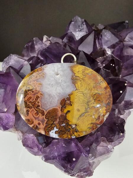 message atefeh about this ad Handmade 950 Silver Pendant with Autumn Agate. Approximate Weight: 28.05 grams Approximate Dimensions: 50 mm*40 mm Price: 195 AUD Posting costs are the responsibility of the customer. |