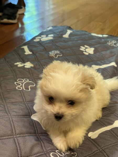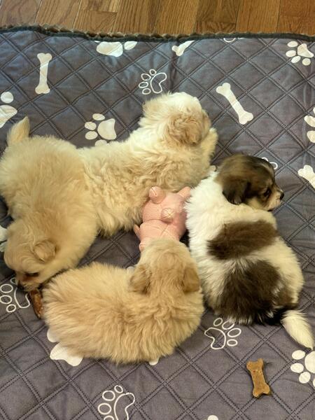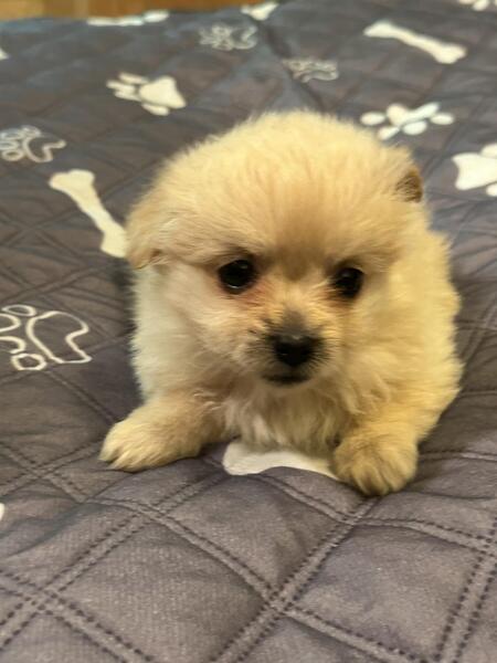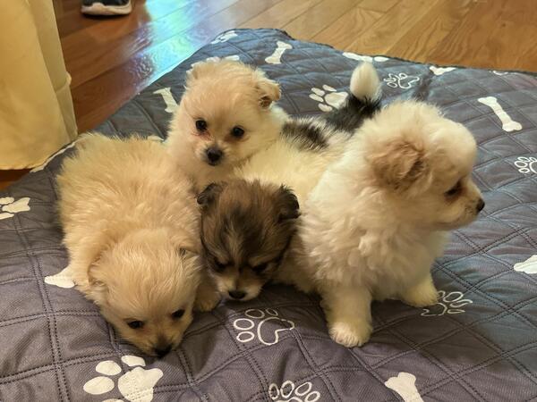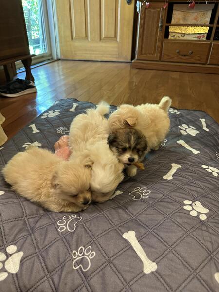 message ktlnhp7352 about this ad Three female, one male ready for a new home. They were born on July 16, 2023. They are 6 weeks old. Easily trained, super smart, estimated weight under 8lbs. Color: one boy and girl cream in color. One girl white and cream mix. One girl white with brown and some black spots. Beautiful, playful, and very lovable. Will be vet checked and will have first shots and dewormed. Puppies are weaned and ready for their furever home! Mother is a registered Pomeranian. Father is a maltipoo! The mother and father can be seen. Please email or text 937-798-5718! |