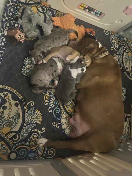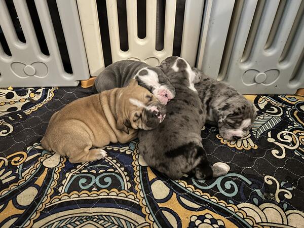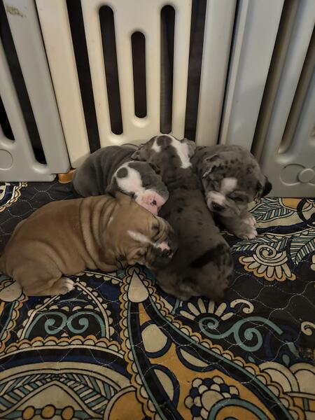 message jbfurrow12 about this ad olde English puppies. 3 left. 2 girls and 1 boy. Born July 27, 2025. ready to go on September 30th. Now taking deposits. Boy is the two tone black and merles are the girls. Wonder temperament. parents on site. Come with first shots, deworming and IOEBA papers! |