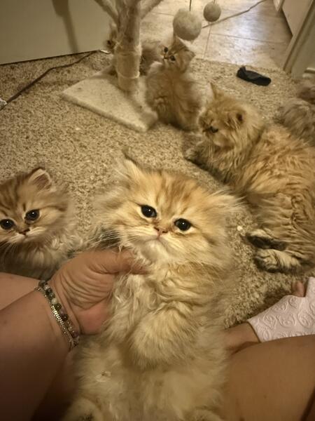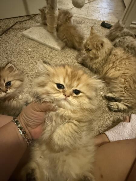 We have Silvers, Goldens, Blue Goldens, Golden points, Silver Chinchillas points and Blue Golden Points.