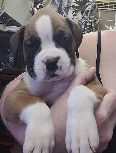 message rebeldogzusa about this ad Puppies are purebred & will come w/tails docked, dew claws removed, chew toy, treat, small bag of food, utd vaccinations & dewormings, shot records/deworming record, & a blanket w/mom & litter mates scent to ease transition from my home to yours. Puppies will be kennel trained & potty training begins at 4 weeks old. Puppies are being raised with mom, Venus (Fawn) & many other dogs inside my home with lots of love & attention Parents of mom have been tested for DM & ARVC. Pics of family can be seen on FB group page or FB business page Rebel Dogz USA Rehoming fee is 400, with a non refundable 200 deposit to hold a specific puppy. The deposit goes towards the total price. Puppy must be picked up by 9 weeks old. Deposits can be made via PayPal, Zelle, Cashapp, Walmart to Walmart or Cash. Puppies were born on 7/26/23 & will be ready for their furever homes as of 9/20/23. Located in Cahone CO Christy 9705703444 rebeldogzcolorado@gmail.com Referrals are available upon request. 3 Fawn boys & 2 Fawn girls message rebeldogzusa about this ad |
