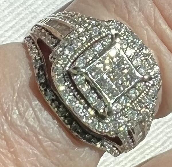 message sturgisbride about this ad genuine, diamond Engagement/weddingring. 1CT Round and Baggette diamonds. Set in a heavy white gold mounting. ill have to look at either 10 carat or 14 karat. Gold (not filled) real Pick up in jewelry store, Battle Creek, Michiganby appointment |