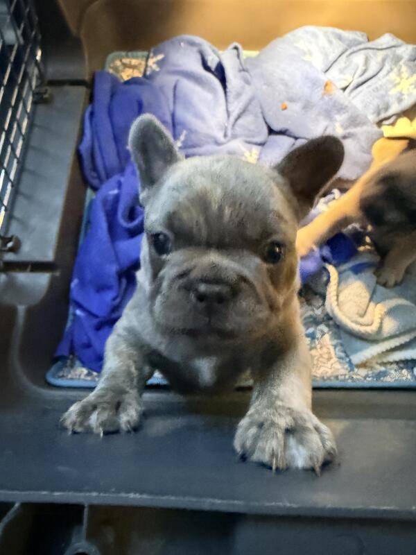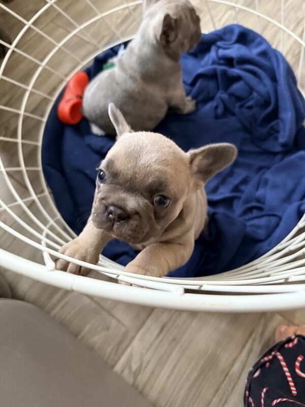 message melishua about this ad One Female one male ready to Go Jan 17th vet check and first Shots $3500 Male is grey brindle Female is Lilac/ wight with darker face Born Nov 22nd 2025 |