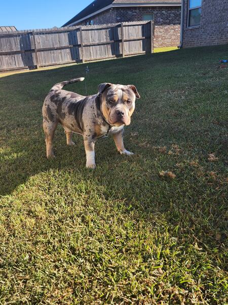 message jford01 about this ad KING - Premium Stud Service Available Distinguished American Bully Stud Introducing KING - An exceptional American Bully with outstanding structure, temperament, and show-quality genetics. About KING Breed: American Bully (Classic/Standard) Coat: Striking tri-color merle pattern (blue/gray, tan, white) Build: Muscular, well-proportioned frame with excellent conformation Temperament: Confident, stable, and gentle natured Health: Fully health tested and certified Outstanding Features Superior Bloodlines - Proven pedigree from champion lines Exceptional Structure - Impressive head, thick bone, and muscular build Rare Coloring - Beautiful tri-color merle coat highly sought after Proven Genetics - Consistently produces quality offspring Excellent Temperament - Perfect disposition and trainability Stud Service Details Professional breeding services available Artificial insemination options available Health certificates provided Experienced breeding support throughout process Puppy guarantee options discussed per arrangement Requirements Current health clearances for dam required Brucellosis testing (within 30 days) Up-to-date vaccinations Pre-breeding consultation required message jford01 about this ad |