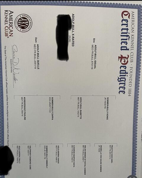 message ddb811 about this ad Grand Champion Adolf-Bull X-Rated is a Hungarian import. AKC registered. Grandson of Zappa & Konig. Health panel cleared. Carries cream & blue |