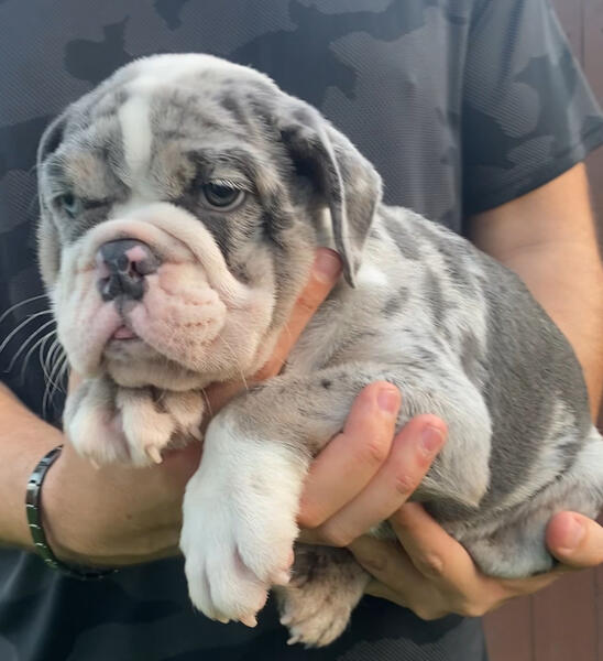 message findmypuppyllc about this ad Blue is a English Bulldog Blue Merle Female. Looking for a forever home. Vaccines up to date. Please call or text me at 281-889-4011 for quick response and more information. FaceTime available. |