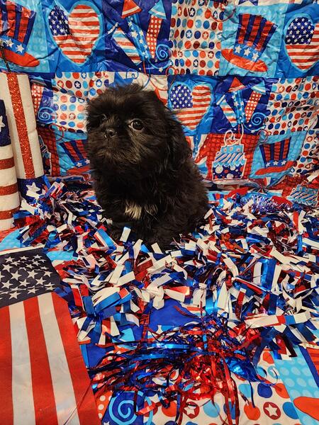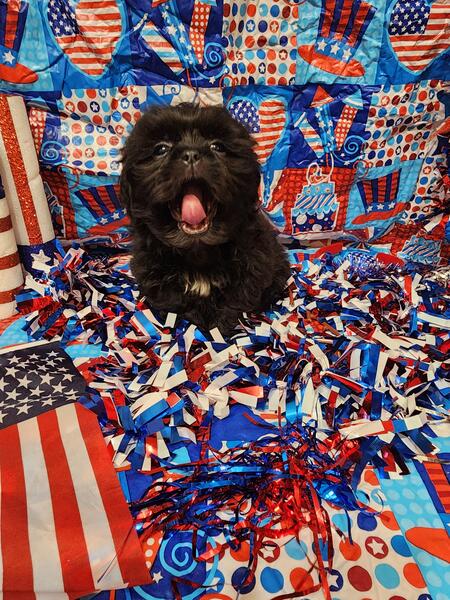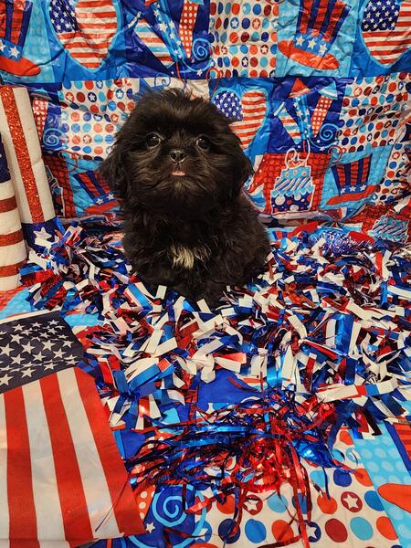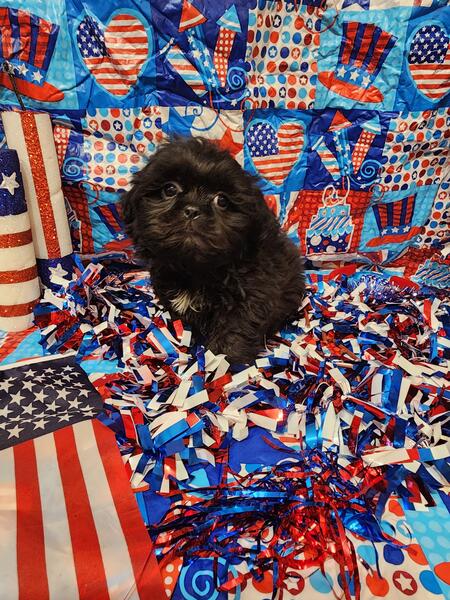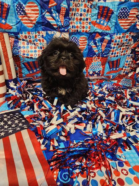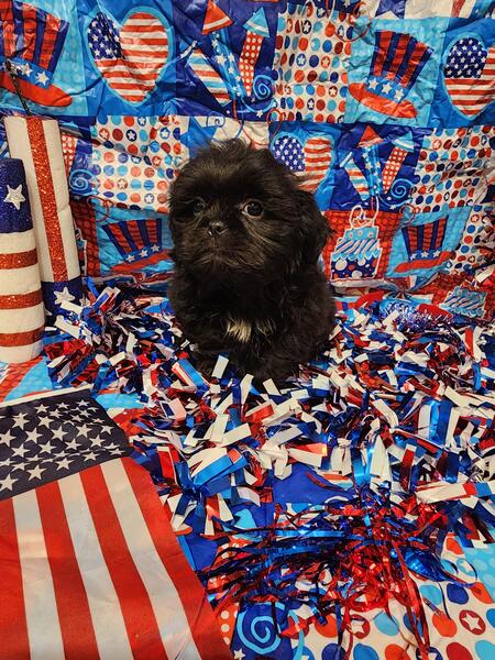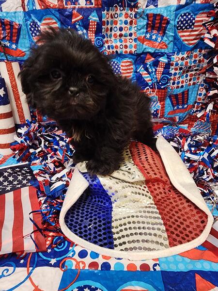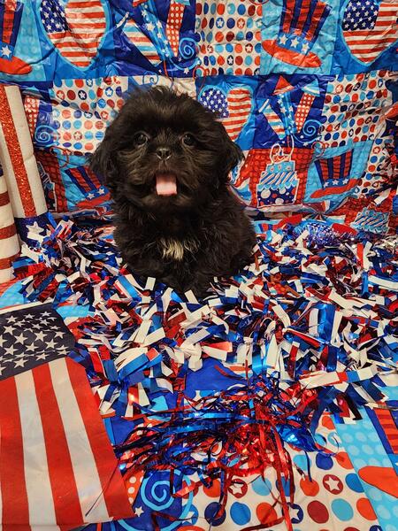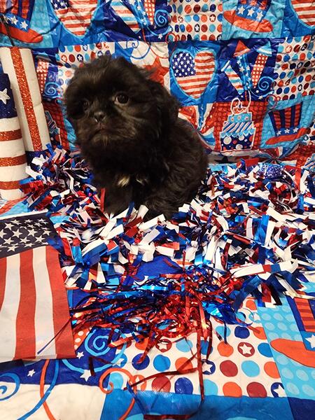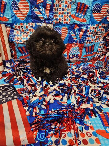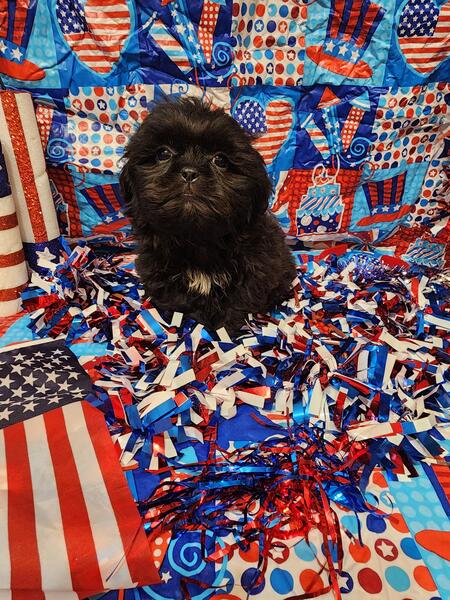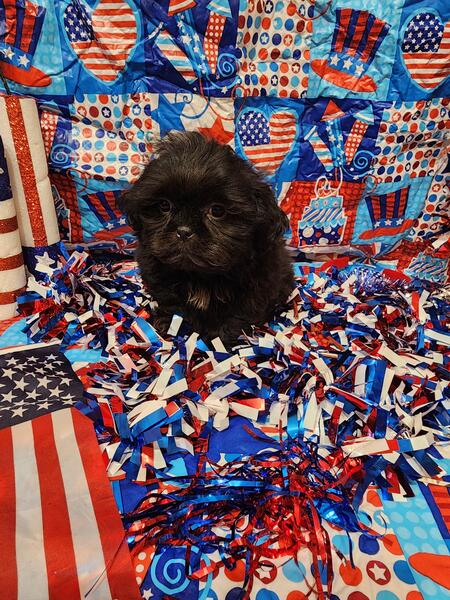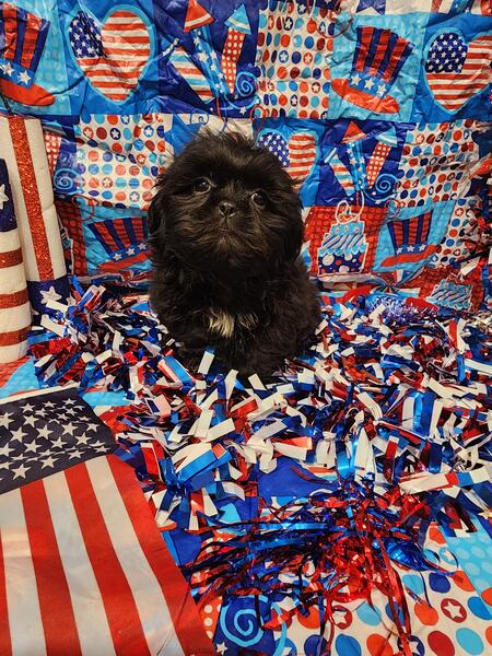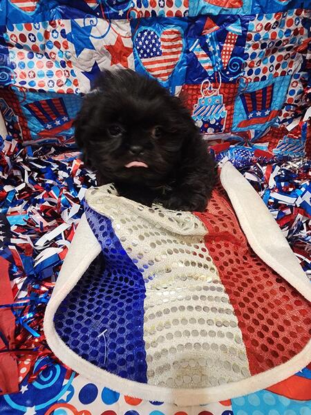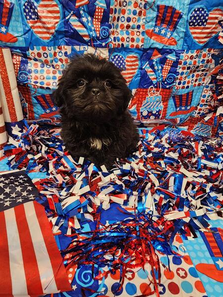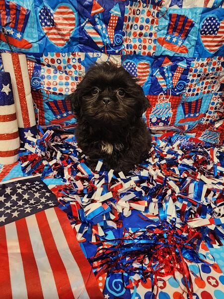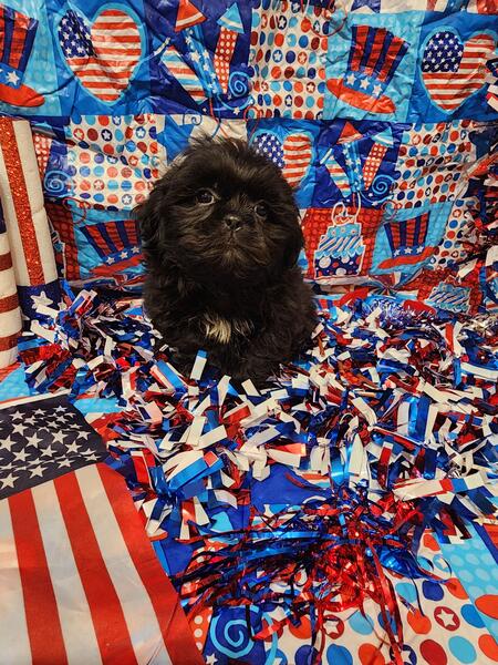 message meatysmomma2014 about this ad Hello I have a absolutely amazing black male shih tzu puppy for sale. He is 10 weeks old potty pad trained and has had all his age appropriate puppy vaccines and wormings. He will also have his health/shot record.This boy will be leaving with a adorable gift basket with food toys treats potty pads and cute puppy shirts. This boy is very lovable and playful he is used to children and other dogs and cats as well. This baby won't be leaving with registration papers I want him to go to a forever pet ONLY home no breeding. He is now ready for his forever home his photos are recent I wanted to dress them up 4th of july themed and they are to cute. If interested in him please send me a message but please SERIOUS INQUIRIES ONLY. Sorry I do not ship. If his ad is still up then he is still available i will remove it when he goes to his forever home.Enjoy his adorable photo's |