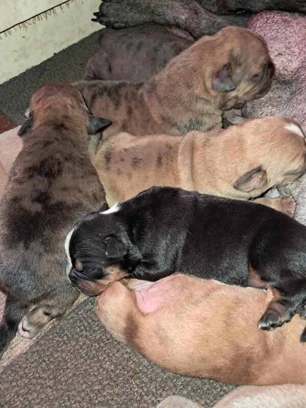 message mmmbulldog about this ad fborn September24th 2025 ready for new gome November. Taking deposits 6 female adorable puppies amd 2 males. Raised with our family and will be well loved socialized. Registered with full rights. Unigue and rare colors.pick of litter is 2500 male lavender. Will be dewormed and vaccinated on schedule.call or text for more details 2512139615 |