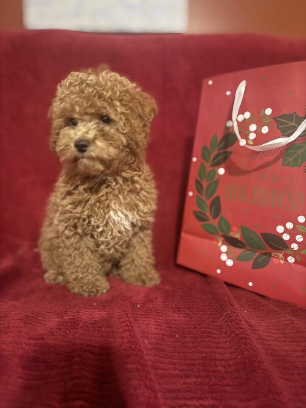 message legacy about this ad Perfect describes this litter. Raised in our county home with a six year old girl . So kid approved. We have two cats inside and two outside so for sure good with other animals . We are working on potty breaking . They are up to date on vaccines and deworming. Can be microchipped if you want . tails were not docked as these babies were so small. I just couldnt bring myself to have it done. So they have a tail they are third generation so hypo allergenic. They are eating on their own have been away from mom for over a week.We can hold till Christmas if you need for a small fee male black phantom 300, female black phantom 350, red female 400 740-507-1341 |