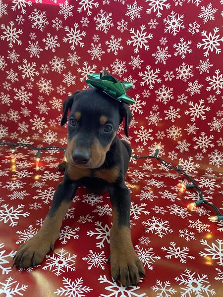 message graceb03 about this ad 10 AKC Registered European Doberman puppies, ready in time for Christmas! Puppies were born October 14th, and will be ready to go to their new homes December 9th. Puppies have tails docked and will have their first shots. They would make the perfect Christmas gift! Please feel free to contact me with any questions @ 231-519-5163 Rehoming fee $985 |