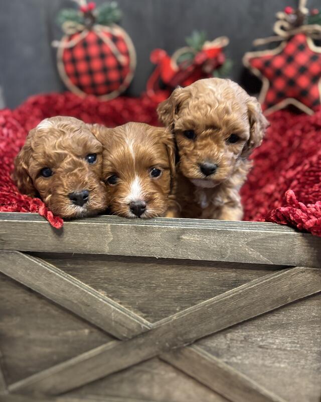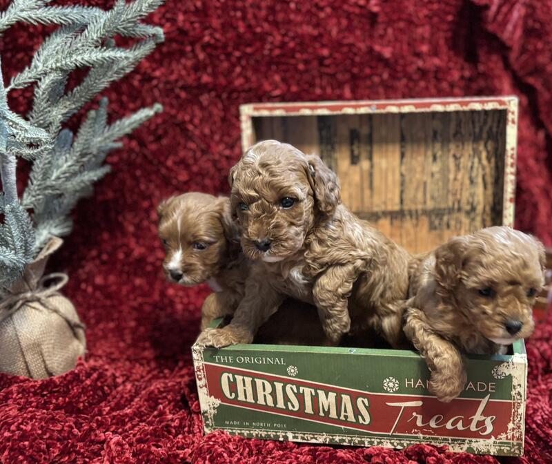 2 females and 1 male cavapoo. They will be ready Christmas Eve! Message me at 5025239553.