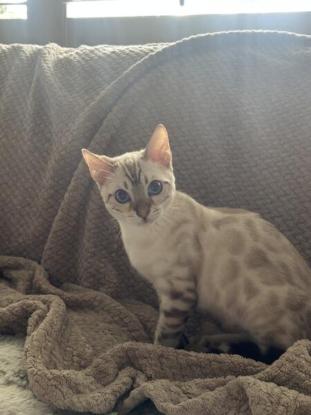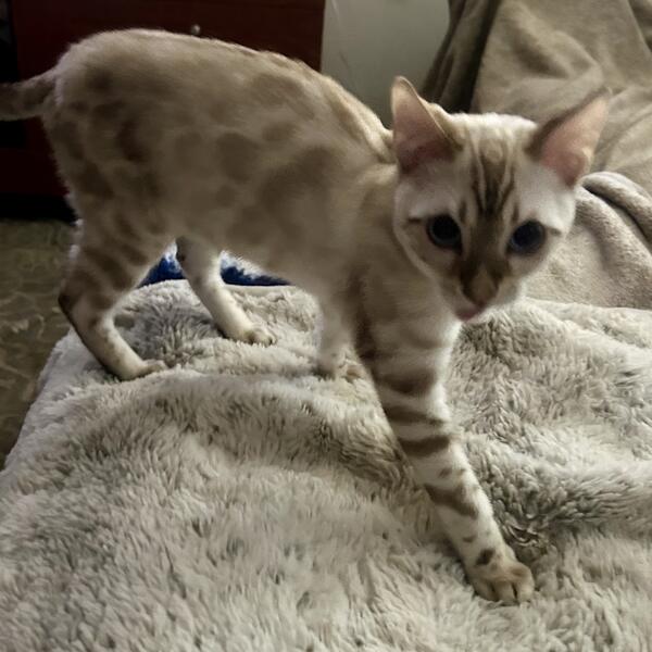 message pacificgirl about this ad Bengal snow mink kitten born 6/28/25. Parents are TICA registered. Glitter coat. Vaccinated& dewormed. San Diego area. Sweet kitten. Kitten will be TICA registered. |
