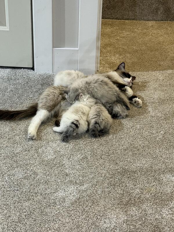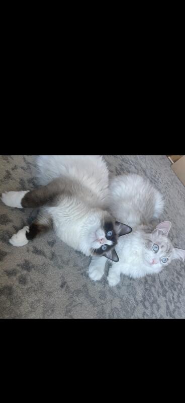 Male kittens ready for homing on 12/17. Their dad is a pure Siberian, mom is snowshoe, siemese and ragdoll.