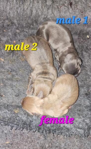 message fwlzkz6 about this ad Miniature dachshund puppies Born Oct.22,2025 pups will be utd on vaccinations, dewormings, and vet checked before leaving. Each pup will come with medical record and care package! Prices vary by pup $1000 and up! Male 1 - blue and tan Male 2 - blue fawn Female - Isabella -pending |