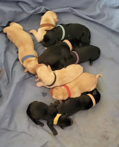 message vandy about this ad Purebred labs born 1/12/25 - 4 yellow males, 4 black female, and 1 black male ready for their homes 3/9/25. Puppies will be AKC registered, up to date on all shots and deworming, and dewclaws removed. Both parents registered and on site. $200 deposit and balance due upon pick up. |