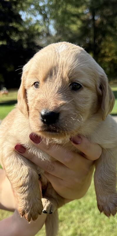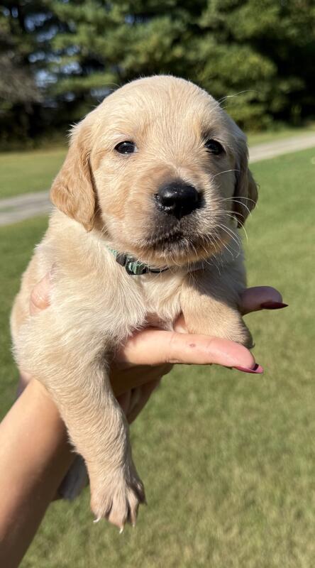message elezlie1 about this ad 1 male and 3 female AKC Golden Retriever puppies ready for their new homes on October 28, 2025! Parents have been genetically tested and cleared of Hip Dysplasia. Raised in home with children and well socialized! Father comes from hunting bloodlines. Puppies will come with limited AKC registration, Dew claws removed, and first round of vaccines. Located Near Battle Creek, MI |