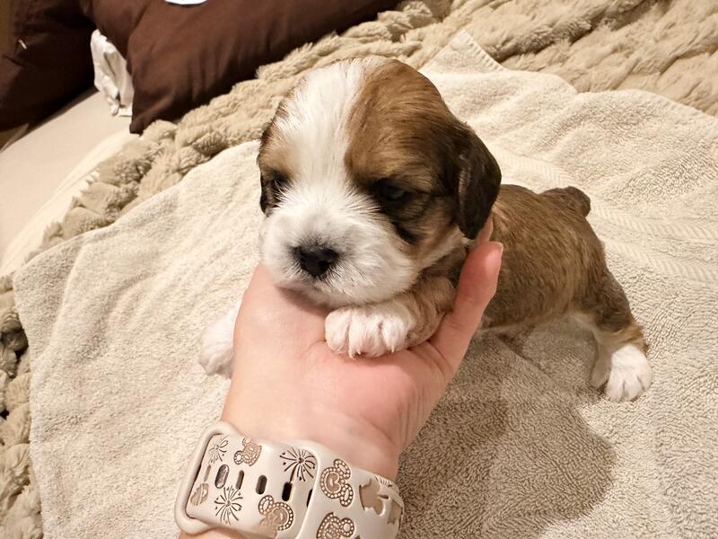 message reischespieces about this ad Valentines Day Puppies Available! We have adorable Cavapoo puppies looking for their forever homes! About the parents: Mom is a Cavapoo with a small amount of Lhasa Apso (11 pounds) Dad is a full-blooded tricolor King Charles Cavalier (17 pounds) Puppy details: Born: December 14 Ready to go home: February 14 (Valentines Day Available: 1 male & 3 females Price: $1,200 each Reservation / Deposit: A $200 non-refundable deposit is required to reserve a puppy The deposit is applied toward the total purchase price of $1,200 Health & care: Dew claws removed Will be fully dewormed Will receive their first set of puppy vaccinations Each puppy comes with a puppy health record Puppy package included: Blanket with mom & sibling scent Puppy food Treats Toy Health records and starter goodies Raised with love: These puppies have been handled since birth and are raised in a family home with four kids and two adults. They are well socialized and grow up around their mom and two other dogs including their grandma! They are sweet, affectionate, and off to a wonderful start in life Message me for more information, photos, or to reserve a puppy! message reischespieces about this ad |
