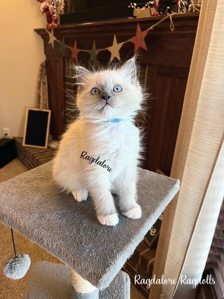 message ragdalore about this ad Reserve Price400 Total Pet Price: $1200 Blue Point Mitted Male This little guy is a quiet little cuddler. He loves being close to people but due to his quiet personalitywe are alwayson the look out so he doesn't squished accidentally. If a whisper was a kitten this would be the guy. He really appreciates long naps with someone special. He was raised with children in home and under foot and has been cuddled and handled daily since birth. He will be vet checked, vaccinated, and dewormed. Feel free to call for more information or pick up time. Pictures of father coming soon. Born; April13th 2025 Dad is;Ragdalores Laylas Lil Stinker Boy Mom is; Ragdalores Duchess |