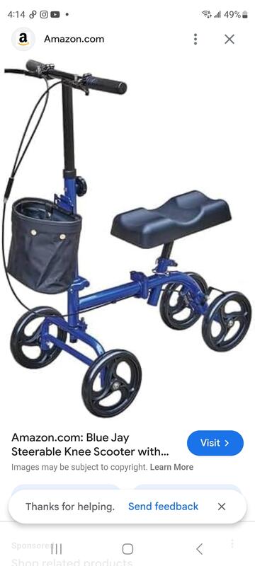 message gingerpoodles about this ad HYBRID SCOOTER. PERFECT FOR COMMUTERS. THEY ARE LIGHT AND FOLDABLE. THESE ARE PRICED ON AMAZON AT $284. Great for use, during surgery recovery. Also for foot and ankle injuries. |