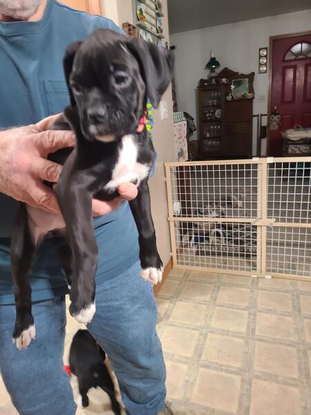 message johndeeretractor about this ad I have 2 AKC Boxer Puppies for sale. I sell them for 800.00. I have 1 sealed brindle female, and 1 fancy brindle male. They are 8 1/2 weeks old. They have had their 1st shot and have been vet wormed. They are all very happy puppies, and have great personalities. Mom and Dad are on site. Please call Connie at 269-876-0557 for more information. Thank you. |