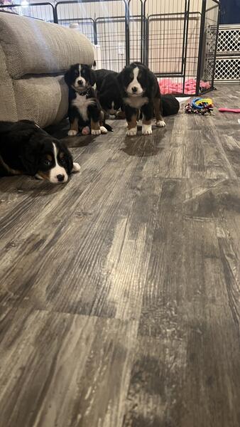 message jadavino about this ad We have beautiful purebred Bernese Mountain Dog puppies looking for loving homes! These adorable, fluffy pups are known for their gentle temperament, loyalty, and intelligence. The Bernese Mountain Dog is perfect for families or individuals who enjoy outdoor activities and companionship. They thrive in loving homes where they are treated as part of the family. Parents: Both parents are purebred, healthy, and have wonderful temperaments. Vaccinations: up to date on shots and deworming Health: health exam completed by vet For more details, pictures, or to arrange a visit, please contact us. Dont miss the chance to bring one of these incredible puppies into your life just in time for Christmas! Located in Central Ohio |