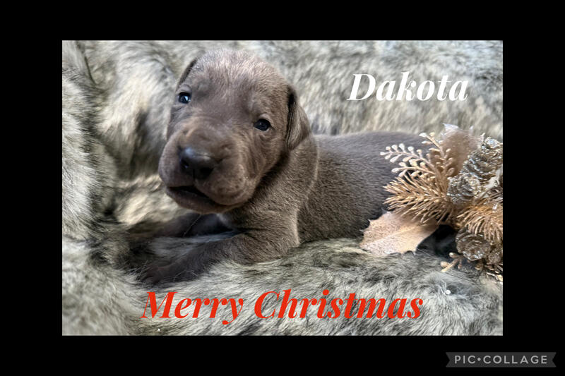 message askmdk about this ad Dakota is a blue boy with only a small white line on his chest and solid blue toes. He is high content Euro Great Dane that comes from danes of great height and heft. Our blues are so shiny! This solid fellow will be an impressive example of a Dane. He comes with a full AKC registration, microchip, health guarantee, and lifetime support. Included are photos of his blue sire at a year of age and his sires sibling at various ages as examples of his lineage. Dakota is blue, but his lineage has lots of color. Paternal grandparents side has chocolate, blue harlequin, fawnquin, etc. Maternal lineage has brindle, blue, harlequin, etc. Ear trimming, if desired, is available at an additional charge with our vet if it is not available in your location. Feel free to call and chat about that or any other questions you have. You just cant go wrong with this fellow as a pet and/or future sire. If presenting as a Christmas present, we can send an up to date Christmas photo to be framed as a gift. Weekly photos and videos to follow. FaceTime is available for seeing him and interacting with as he grows. 713-472-2213 message askmdk about this ad |