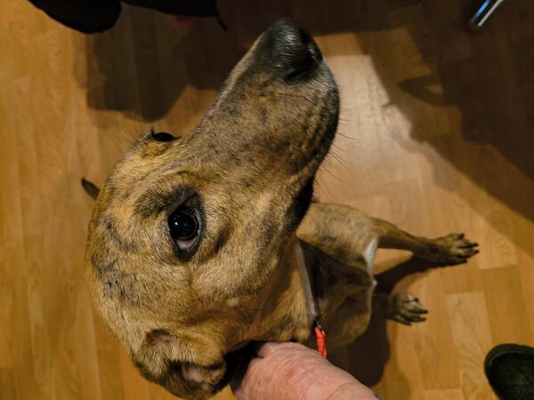 message rhonda54 about this ad Brindle with brindle marks she will be 5 in July up to date on shots , microchipped , spayed house broke loves to cuddle Getting rid of her because of my health |