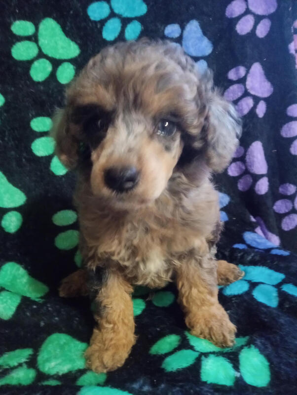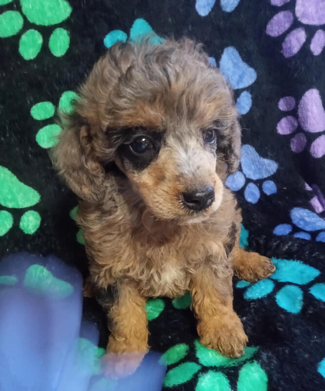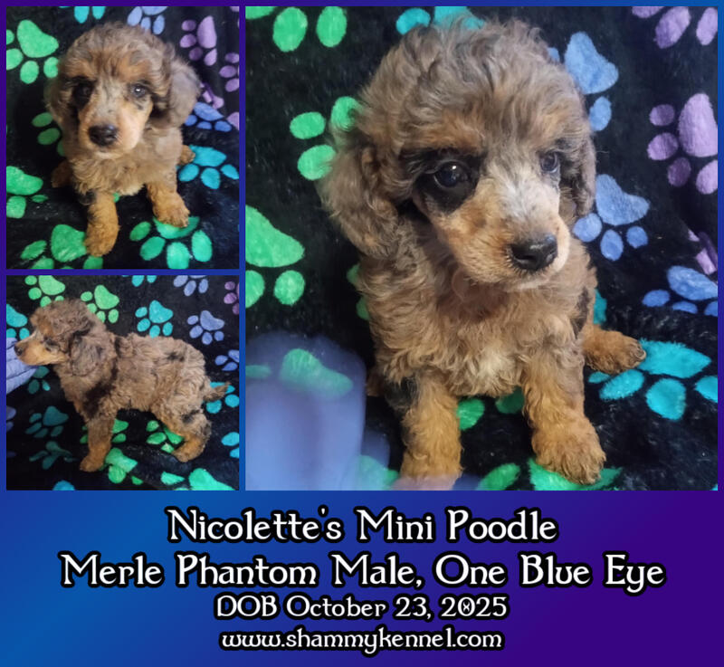 message shammykennel about this ad Blue merle phantom male miniature poodle, one blue eye. Brown carrier. DOB Nov. 23, 2025. Will have age appropriate vaccinations and genetic health guarantee. CKC registration for breeding is $2500. Additional photos and information can be found on my website, shammykennel.com. Phone or text 870-371-3193 CST. |