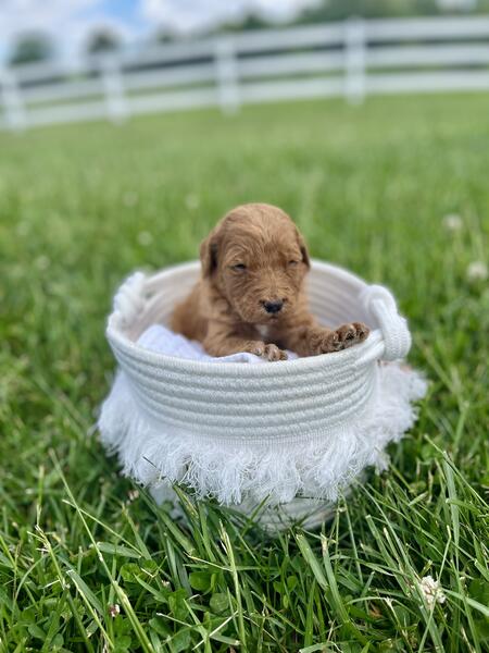 message michellesmith475 about this ad Sweet F1B Goldendoodle female born on Easter. Will be ready to go home mid-June. Wormed on schedule and will receive puppy vaccinations at 6 weeks at her vet visit. |