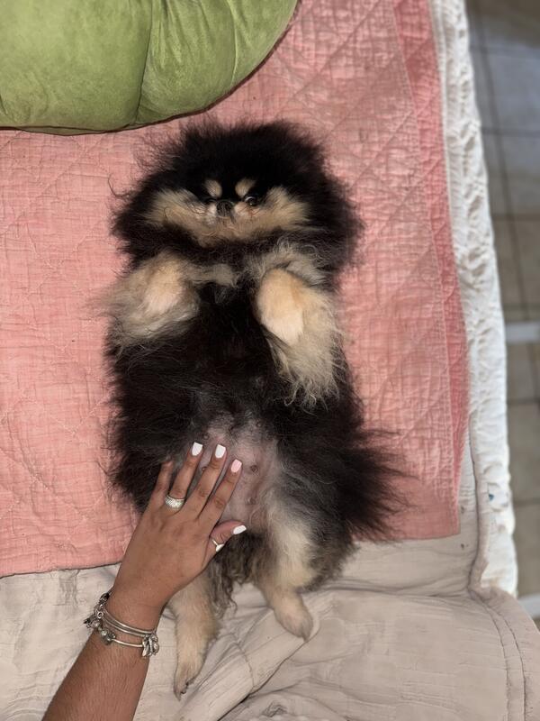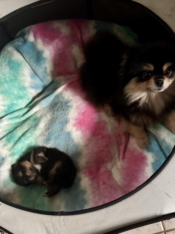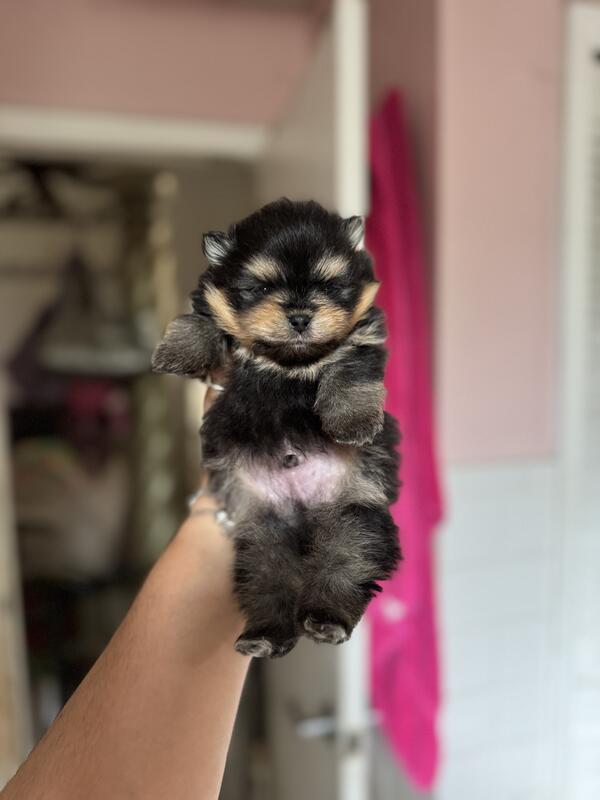 message queenconniebonnie about this ad The cutest most adorable teddy bear Pomeranians Both are little princes - expected weight is 4-6 pounds Black and tan, triple coat, tiny ears and tiny legs with a tiny snout Parents both imported from Russia Born November 13 |