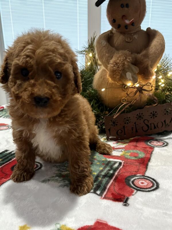 message msdebrina about this ad One Mini Goldendoodle ready for his forever Christmas home. He will probably not be over 18-20 lbs, beautiful deep Red color and White chest. Loves to cuddle, being held and talked to. Has been Vet checked, Vaccinated and wormed. Imagine the Love he will bring to your home for the Holidays. Call or Text. 989-835-6061. |