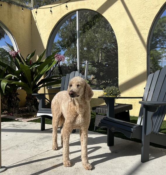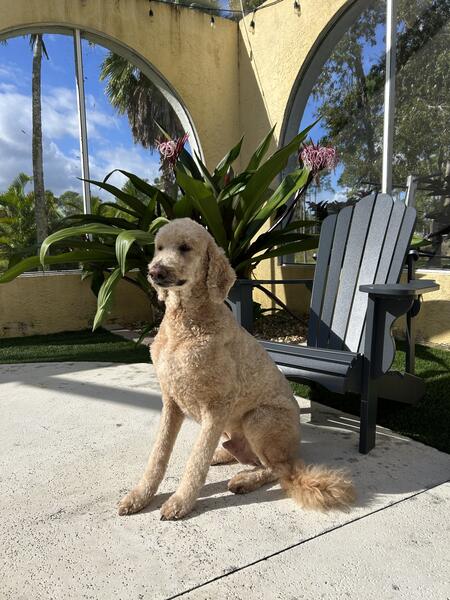 message helenareid about this ad Red is a 70lb F1B Goldendoodle, 75% poodle 25% Goldendoodle. He has never had any health problems and is fully vaccinated. He is full of fun, very obedient snd extremely affectionate, he really thinks he is a lap dog We wish to rehome him with a family that can give him the same love and attention our family has given him. |