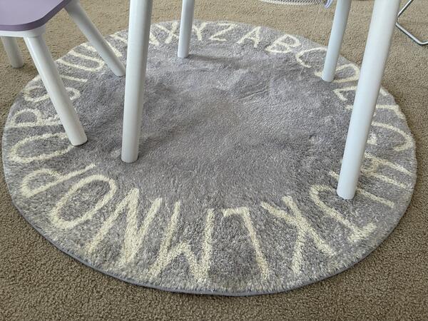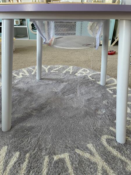 Kids table with storage plus one chair and alphabet rug. 20.00 for all OBO