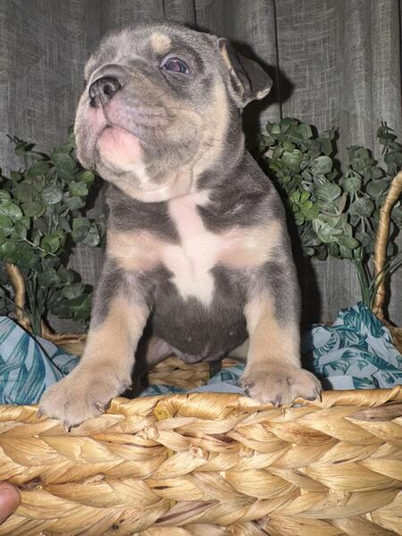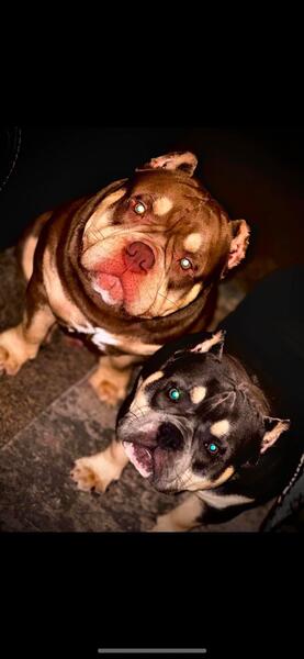 message destyneej about this ad 4 female 1 Male quality puppies, Trapzilla & Golden child bloodline born on January 6th they just started eating on their own will be ready to go to their furr-ever home within the next week. Will have first round of shots & dewormed. Abkc registered. Prices vary by pup call or text 815-262-8414 |