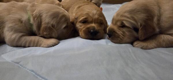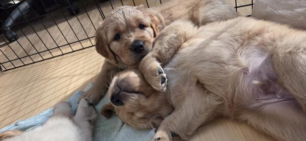 message sandybottmgolden about this ad AKC Golden Retriever puppies 1 males and 2 females available. Born Oct 6th. Dam and sire are both family pets. No DNA or genetic testing has been done. Puppies are being raised indoors around the daily commotion of raising a family. They will be socialized, weekly nail trimmings, dewormed at least 3 times, first shot, microchipped, vet checked and a clean fecal test before going to their forever home. A $200 non-refundable deposit is required to hold the puppy of your choice with the remaining $1000 due in cash at the time of pick-up. Message me to set up a time to meet your new best friend! Located in Greenville, MI (48838) Puppies will be ready for their new homes Dec 1st. Photos are of parents, current puppies and dogs from past litters. |
