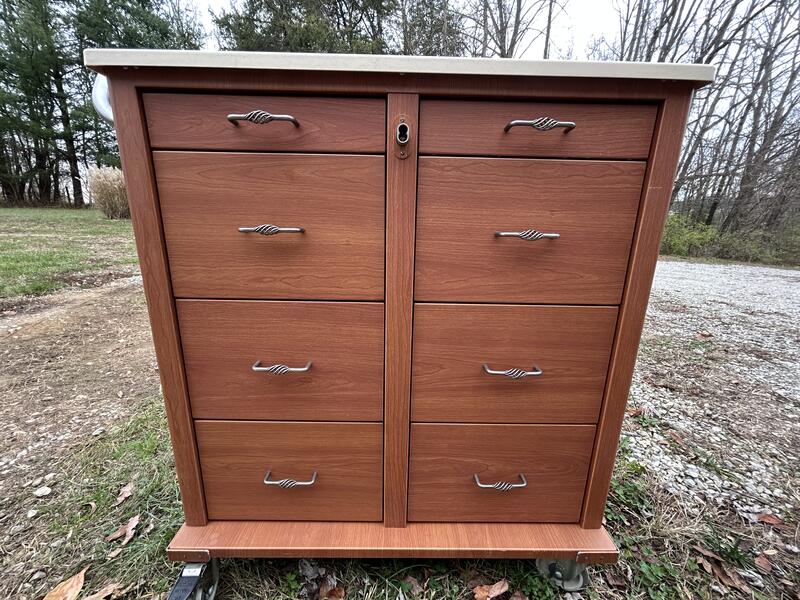 message charissa about this ad This is a rolling cart in excellent condition, this cart is clean. Wheel brake works, and wheels roll smoothly. This cart can be set up to lock. I have removed the locking mechanism but can reinstall if asked. Great for tools, crafts, changing table, dresser Price is negotiable |
